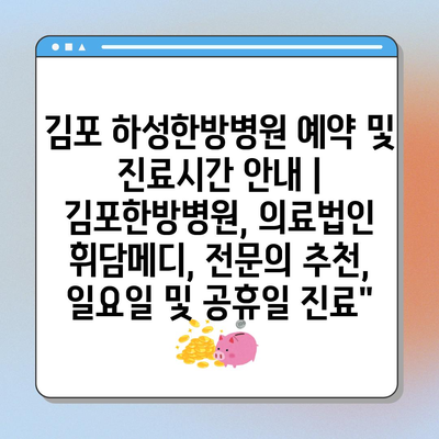 김포 하성한방병원 예약 및 진료시간 안내 | 김포한방병원, 의료법인 휘담메디, 전문의 추천, 일요일 및 공휴일 진료”