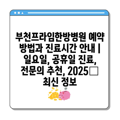 부천프라임한방병원 예약 방법과 진료시간 안내 | 일요일, 공휴일 진료, 전문의 추천, 2025年 최신 정보